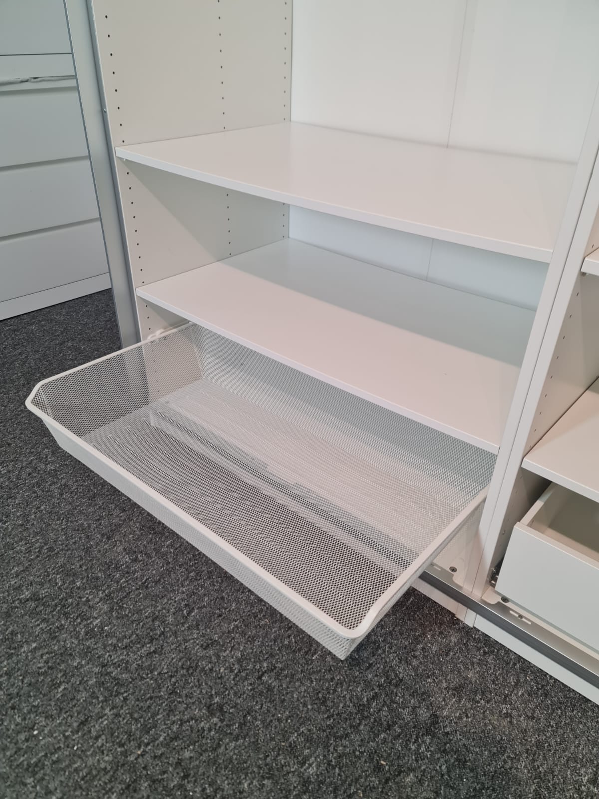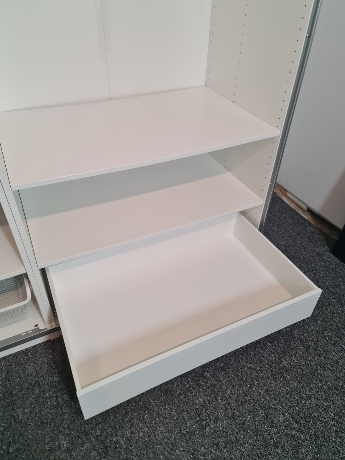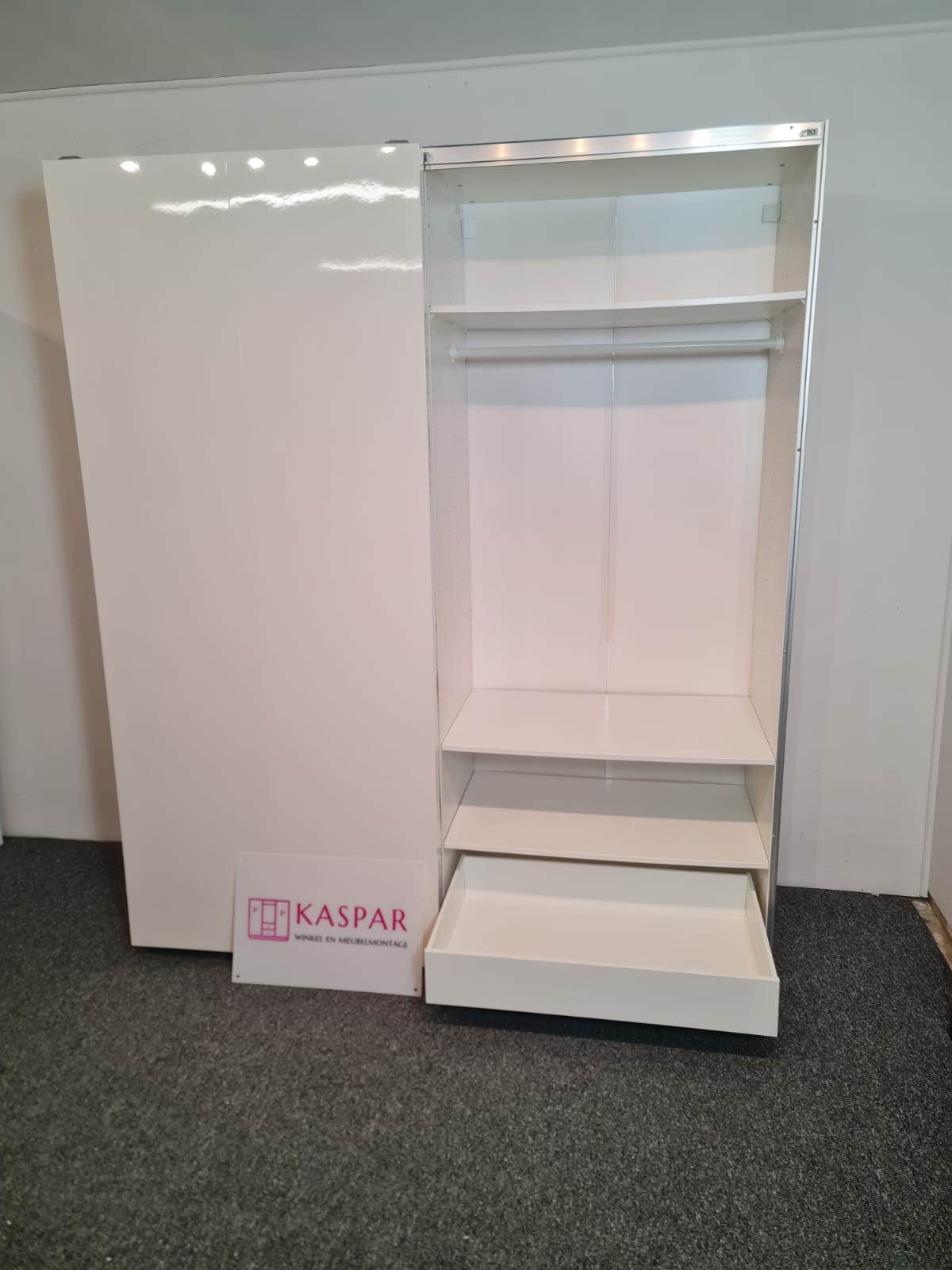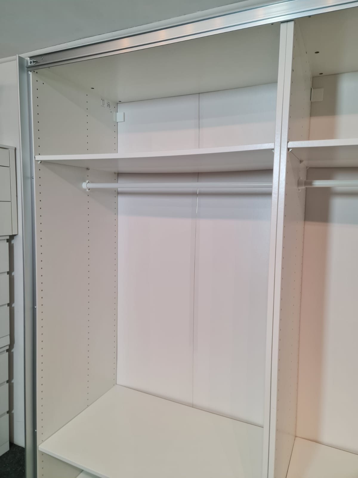 Szafa z popularnej i lubianej serii mebli ikea pax. Wymiary: 2.00m szeroka, 236cm wysoka, 60cm głęboka. Drzwi z płyty meblowej, białe – wysoki połysk. Szafa ma dużo półek, drążki na wieszaki, dużą szufladę i wysuwany koszyk. Szafa jest w bardzo dobrym stanie, została fachowo zdemontowana, bez uszkodzeń i jest kompletna we wszystkie elementy.