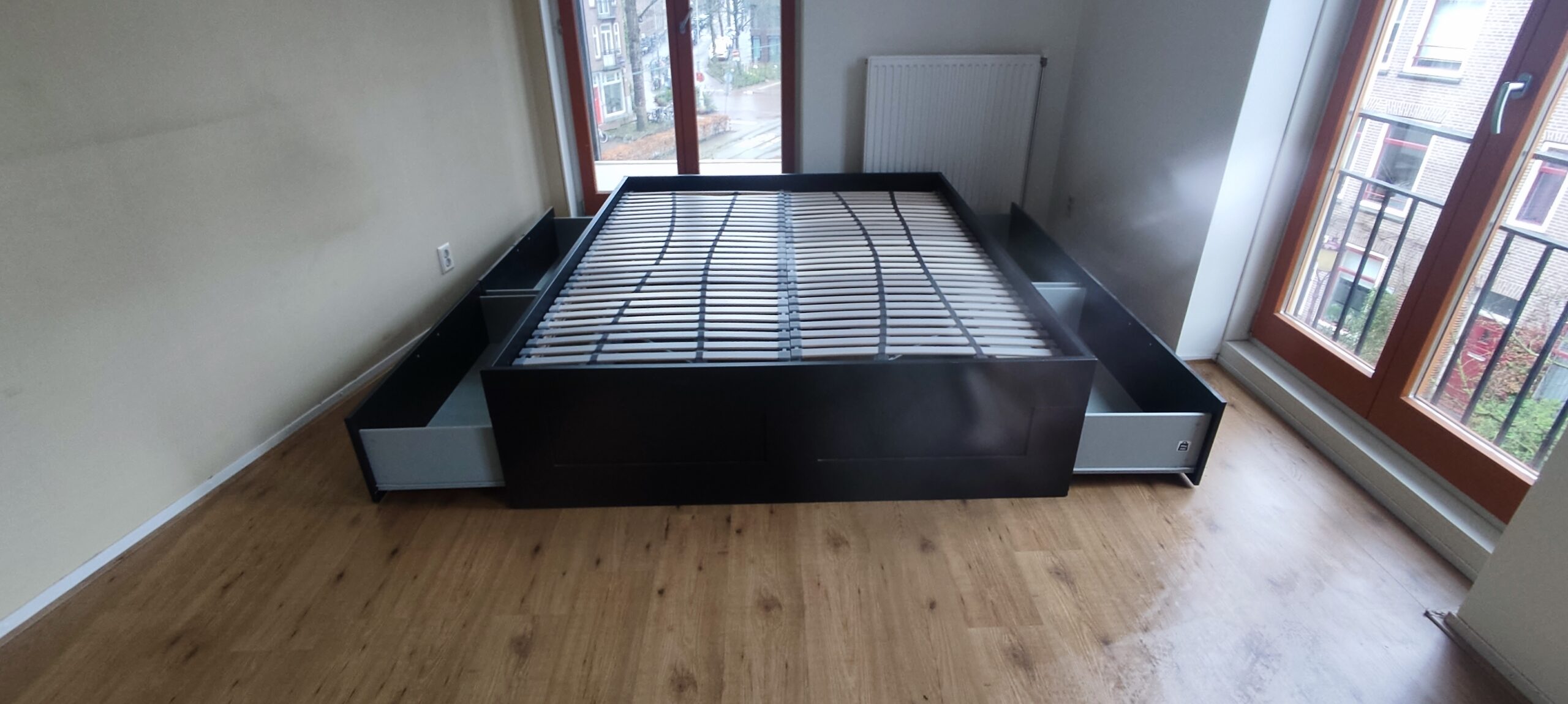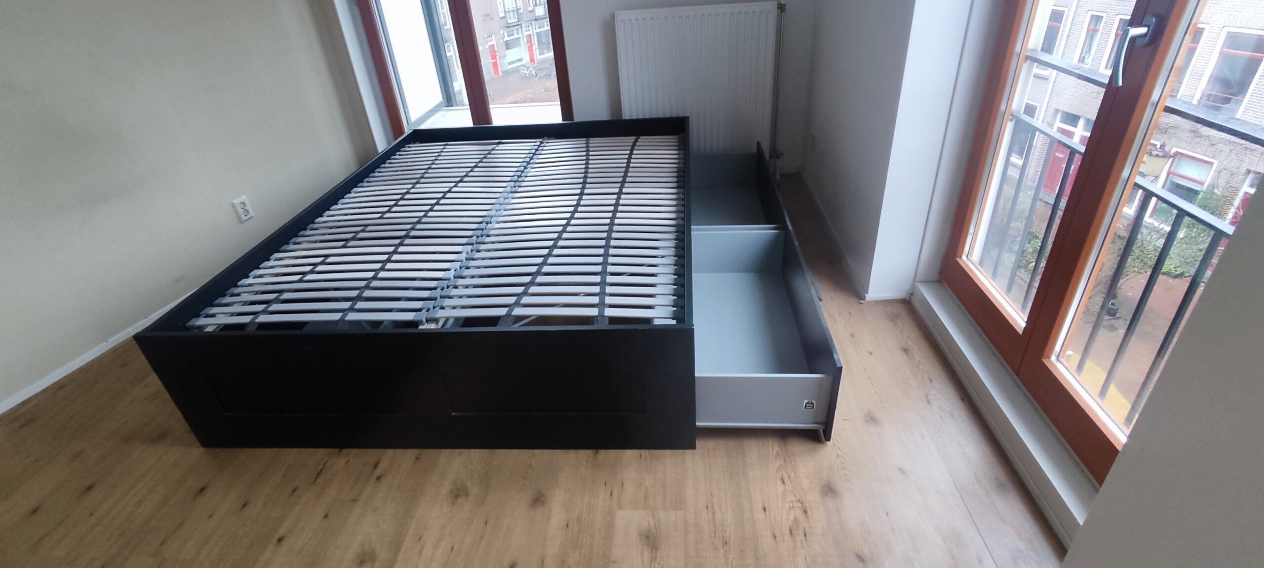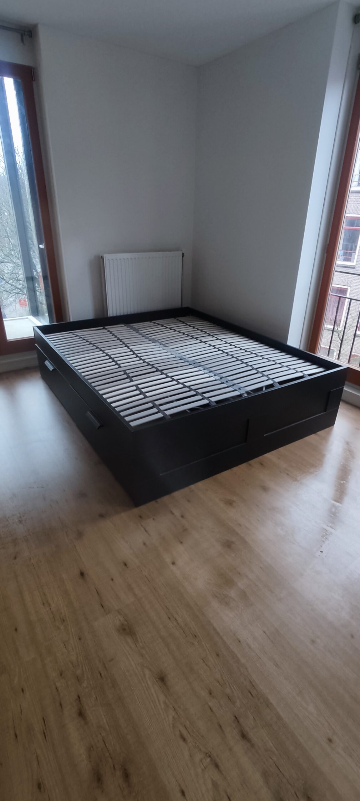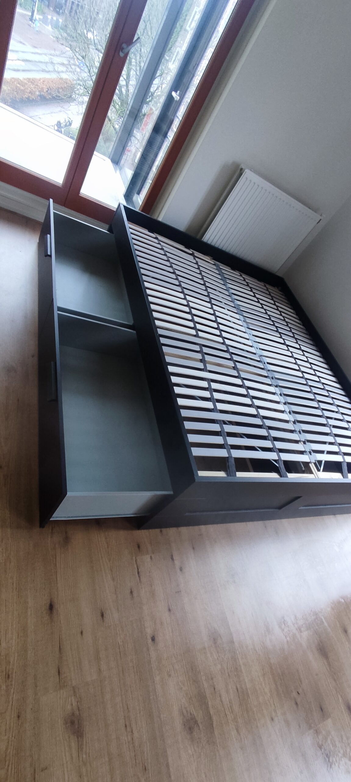 Łóżko Ikea brimnes 160×200. 4 duże i pojemne szuflady do przechowywania. Stan bardzo dobry, nie ma uszkodzeń, fachowo zdemontowane i kompletne ze stelażami