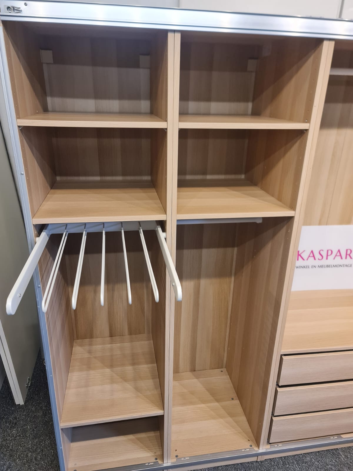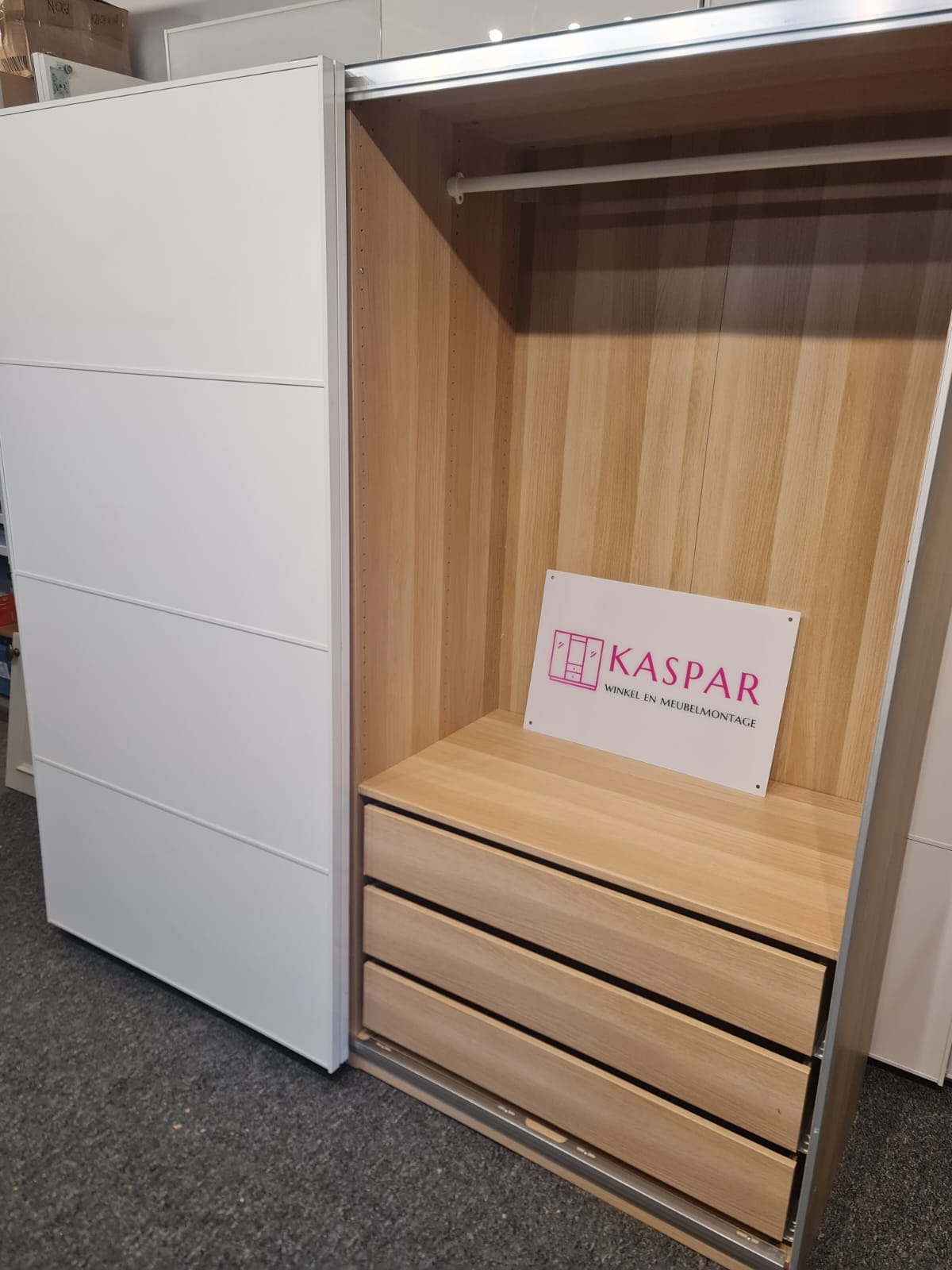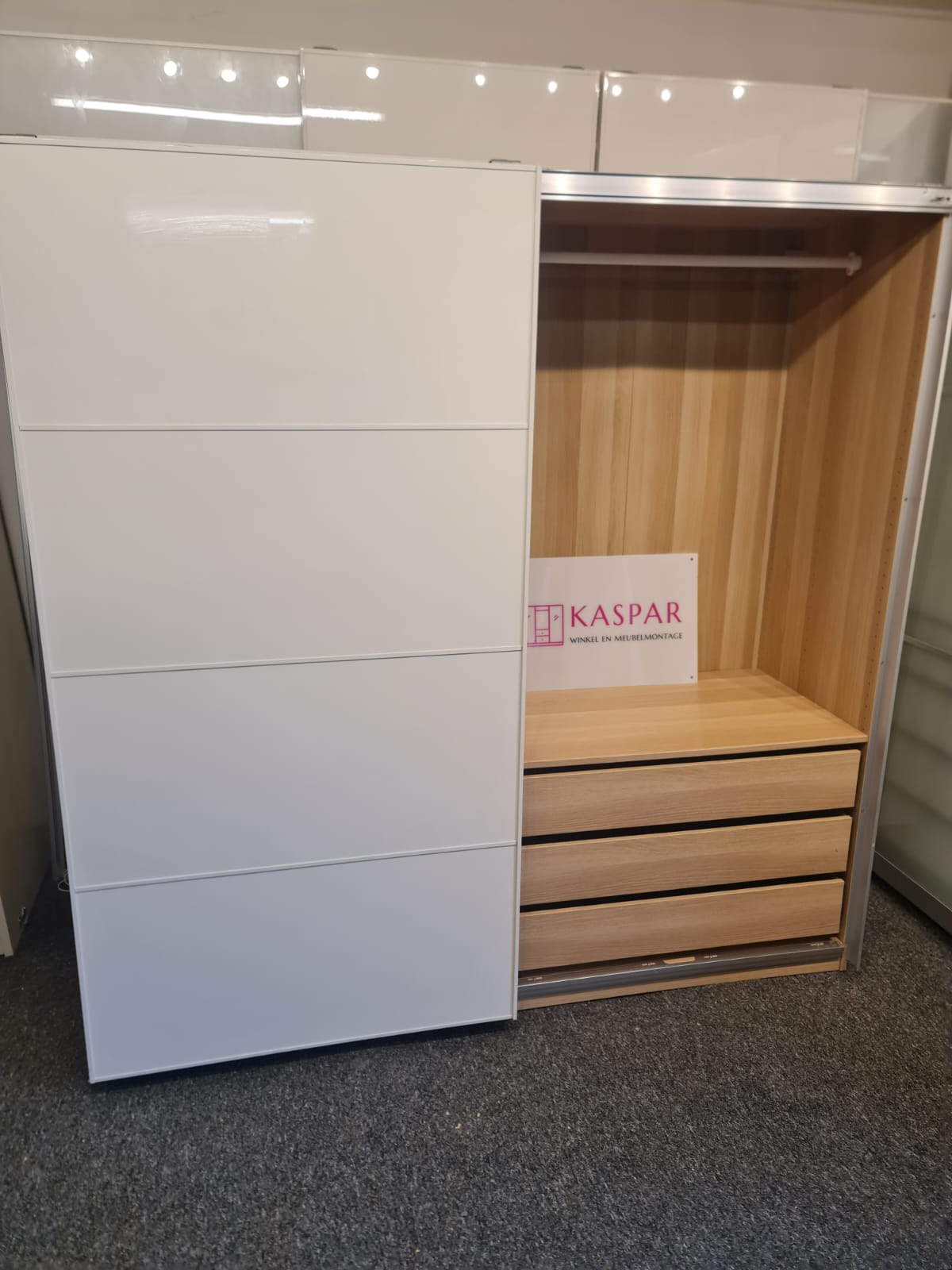 Szafa z serii mebli ikea pax. Wymiary: 200cm szeroka, 202 cm wysoka, 60cm głęboka. Dwoje drzwi przesuwnych (białe, wysoki połysk).W środku dużo szuflad, organizer do wieszania spodni, półki, drążki na wieszaki. Stan szafy jest bardzo dobry. Umiejętnie zdemontowana, bez uszkodzeń i kompletna we wszystkie elementy.