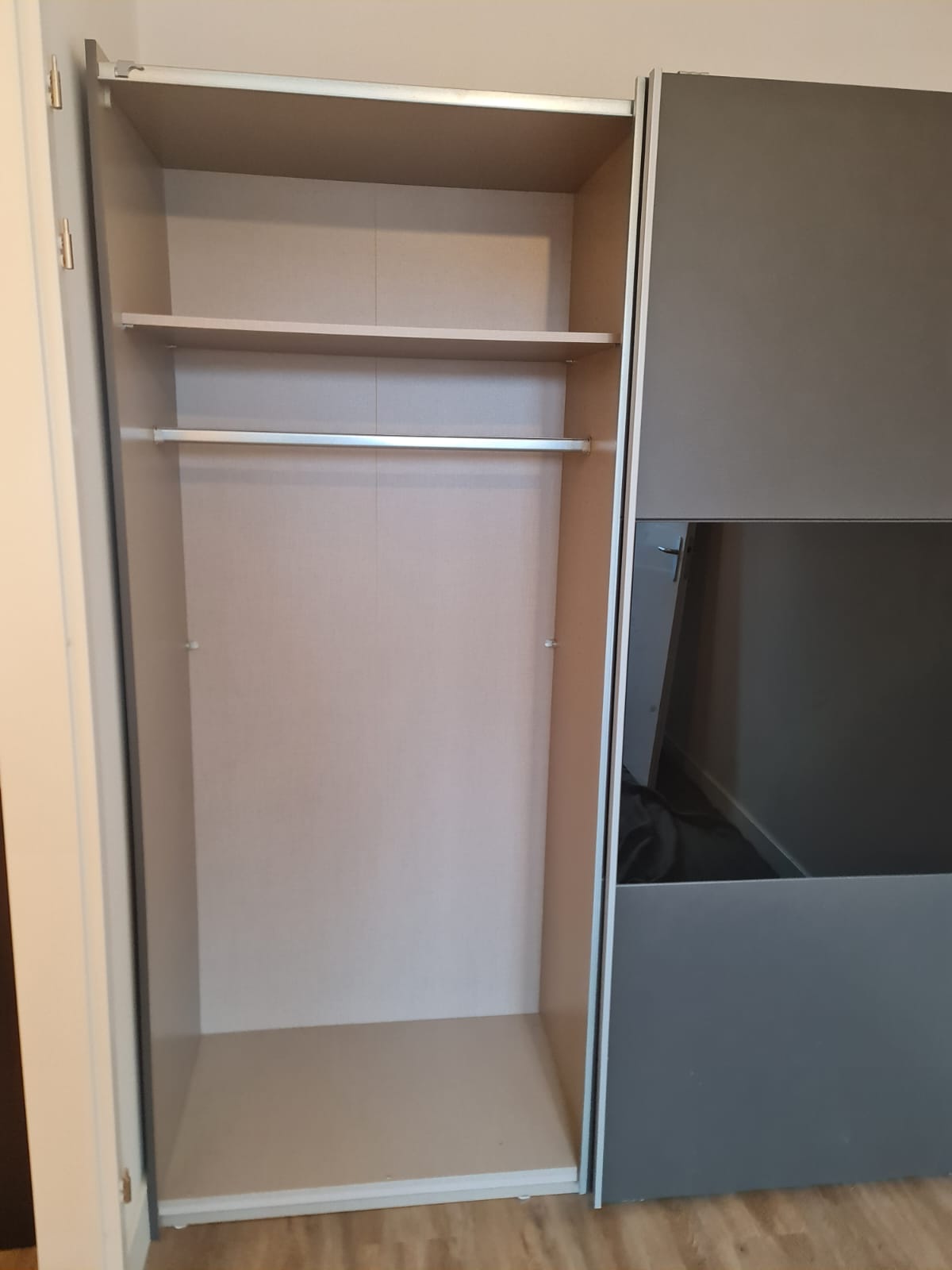 Szafa z drzwiami przesuwnymi. Wymiary: 175cm szeroka, 210cm wysoka i 60cm głęboka. Stan szafy jest bardzo dobry. Nigdy nie demontowana, bez uszkodzeń. Umiejętnie zdemontowana i kompletna we wszystkie elementy.